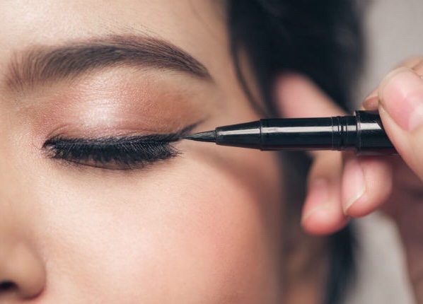 4- El eyeliner no puede faltar Es empleado para marcar el contorno de los ojos y asi aumemtar su expresividad, crear una sensación de agradecimiento y servir como elemento de decoración con el resto de productos aplicados durante el maquillaje